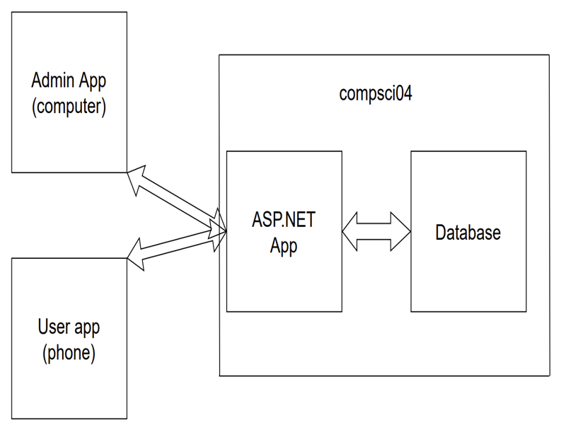 To use the user or admin source code in a Visual Studio solution, Visual Studio 2022 must be installed with the "Mobile development with .NET" addon. Create a new solution targeting Android (for the user app) or Windows (for the admin app) and add the corresponding files to the solution. For each application, the _client.BaseAddress field in "WebService/Requests.cs" needs to be changed to the ip address of the machine the API app is ran on. For example, if the api is run locally with the port number "1234", then the string should be "localhost:1234/api/".