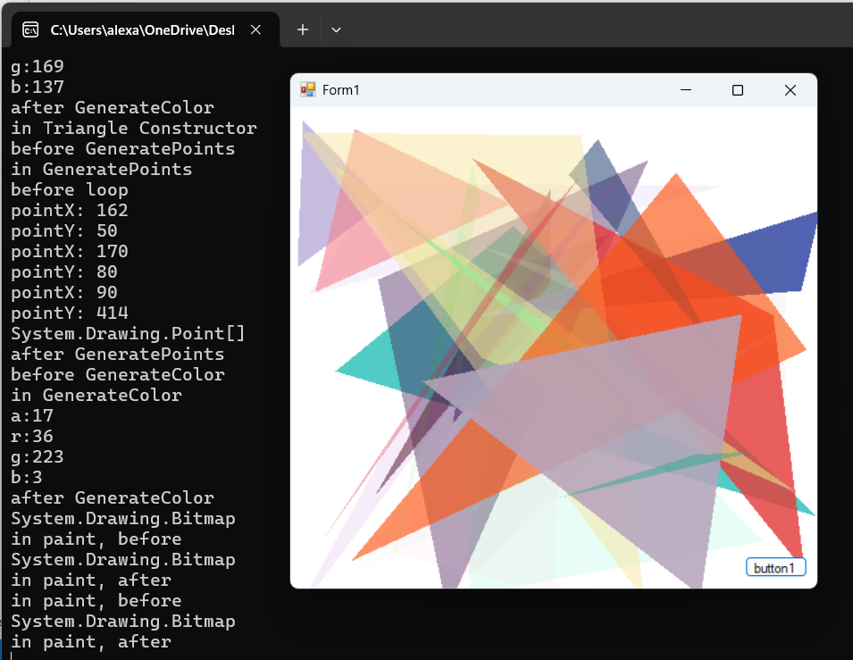 Update from this last week...my data structures are coded and are working well! Late last week, I met with Dr. Meyer to discuss the topic of genetic algorithms. We talked about each operator that takes place while running the algorithm (population initialization, scoring, selection, crossover, and mutation) and how I can approach them to achieve my goal: developing an application to build an image from overlapping polygons to resemble an original image. As a result of that meeting, I have a strong understanding and much more confidence about my project as a whole, than I did before. Takeaways...see each operator of the algorithm as its own project. Next steps...create a C# project for each operator - this includes a form and functions. At this time I do not have any images to show, hopefully next week I will have plenty of polygon images to show off! Stay tuned...!