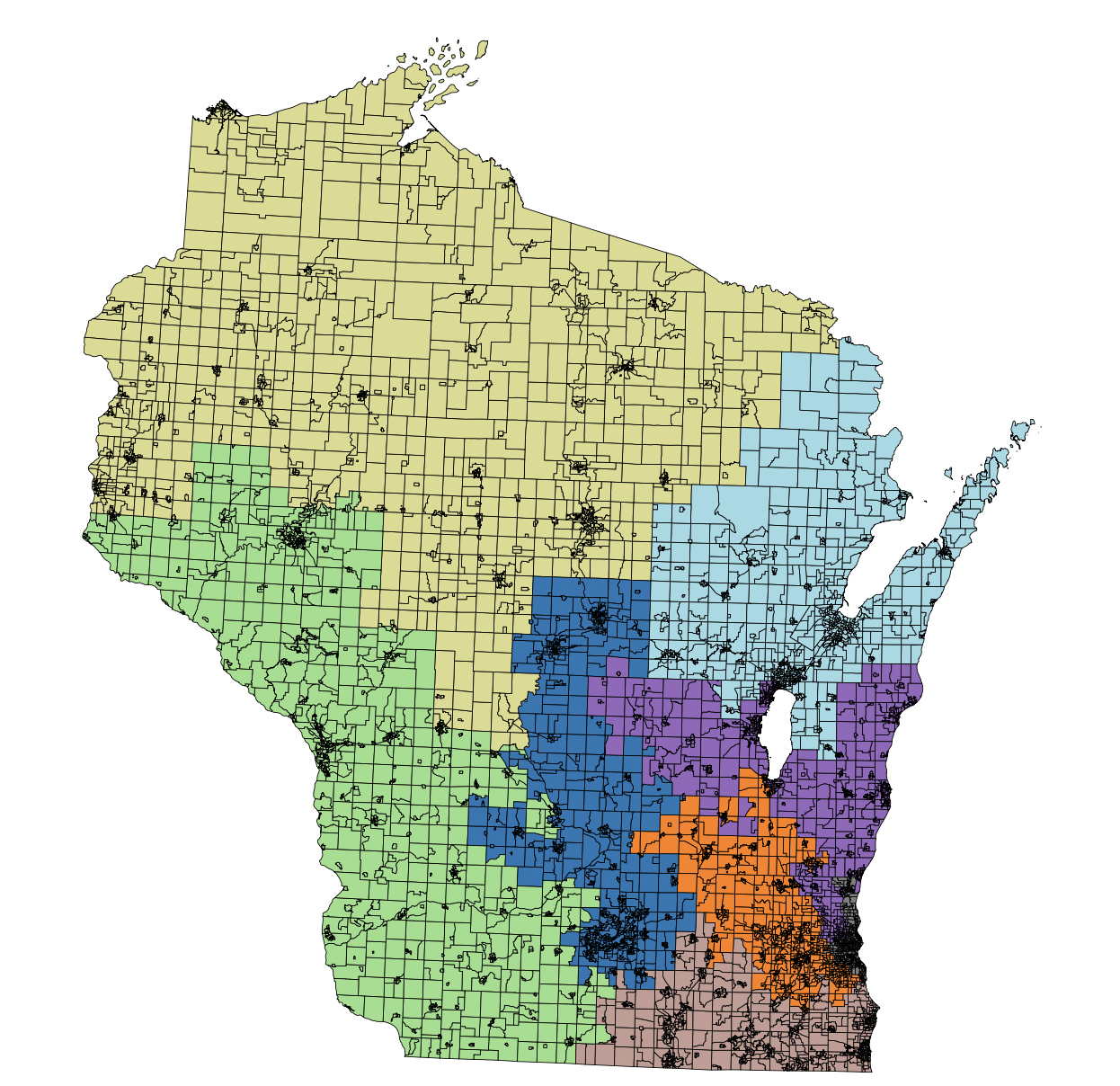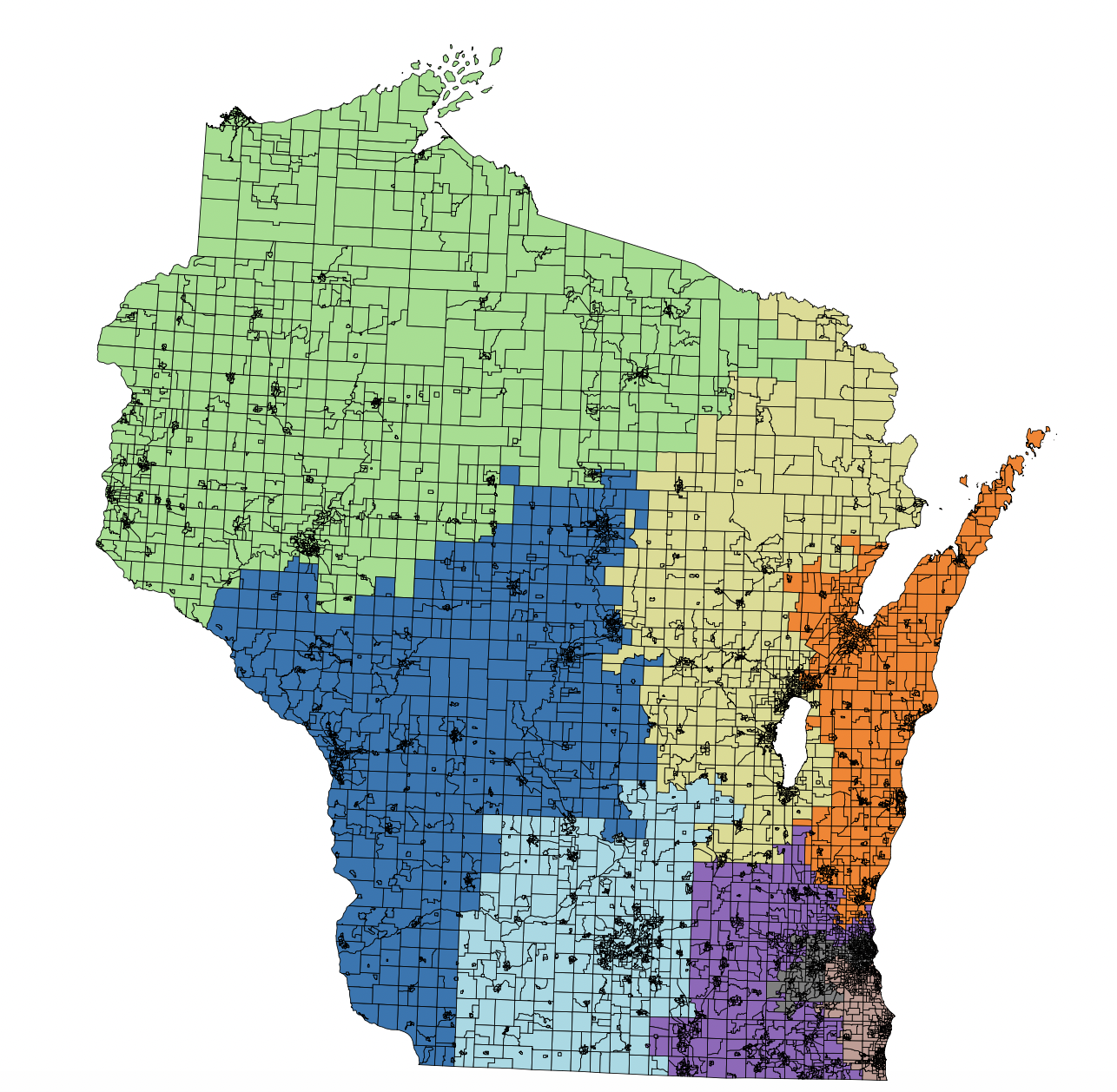 Currently, I am working on getting my algorithm to apply to Wisconsin. I have a shape file and am able to render graphics using GeoPandas. I am running into some issues I did not have with the grids. The initial distribution is very important to ensure connectivity within districts. Initially, I tried randomly assigning initial districts. This was a VERY bad idea; the resulting map resembled confetti. I also tried rows/columns like I had done the grids, but this was also a bad idea, as that does not guarantee initial connectivity. I think the best course is to use the current district map used by the state, or to use a different method, such as 'growing districts' from a random ward to create an initial map.